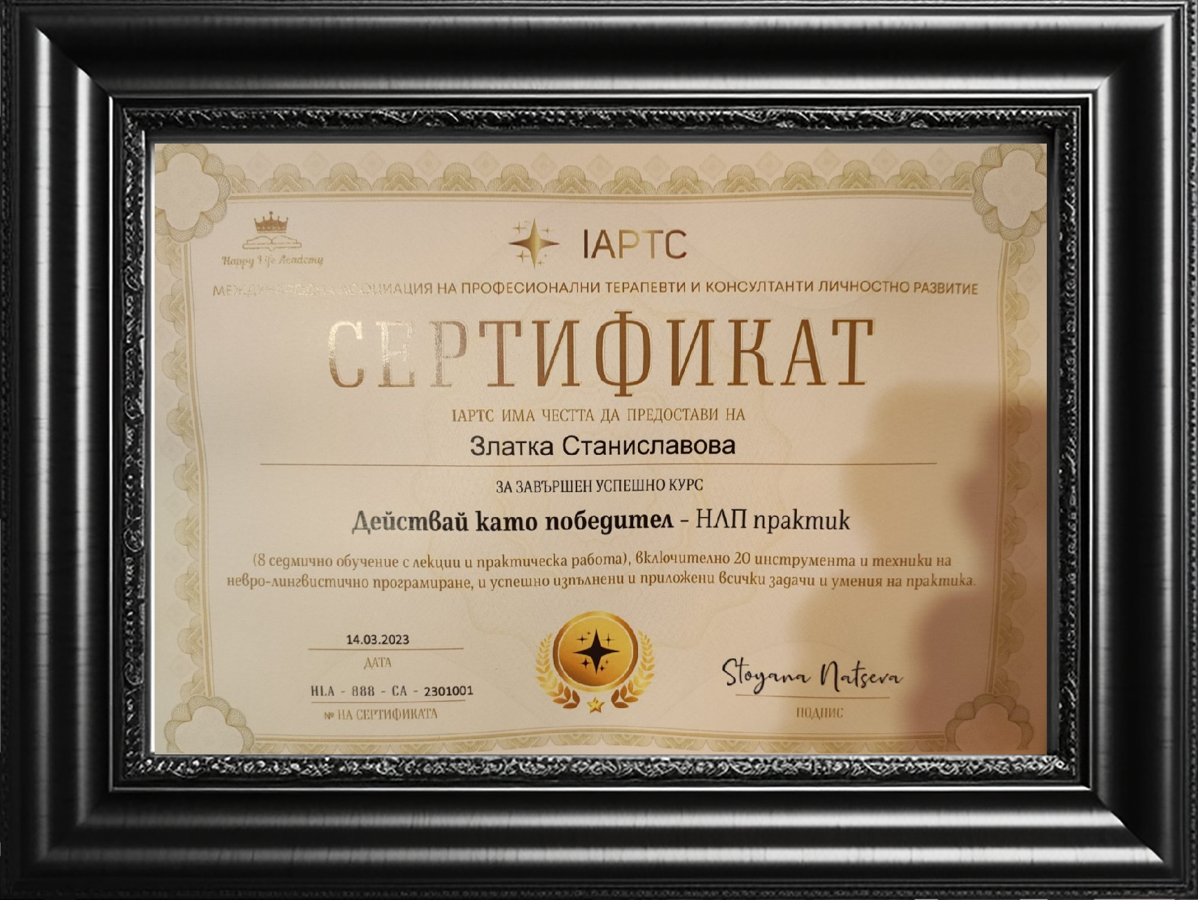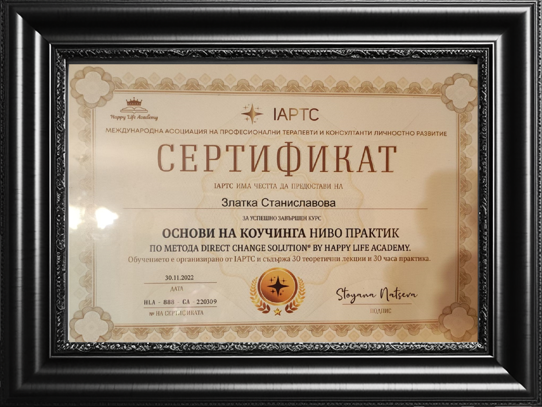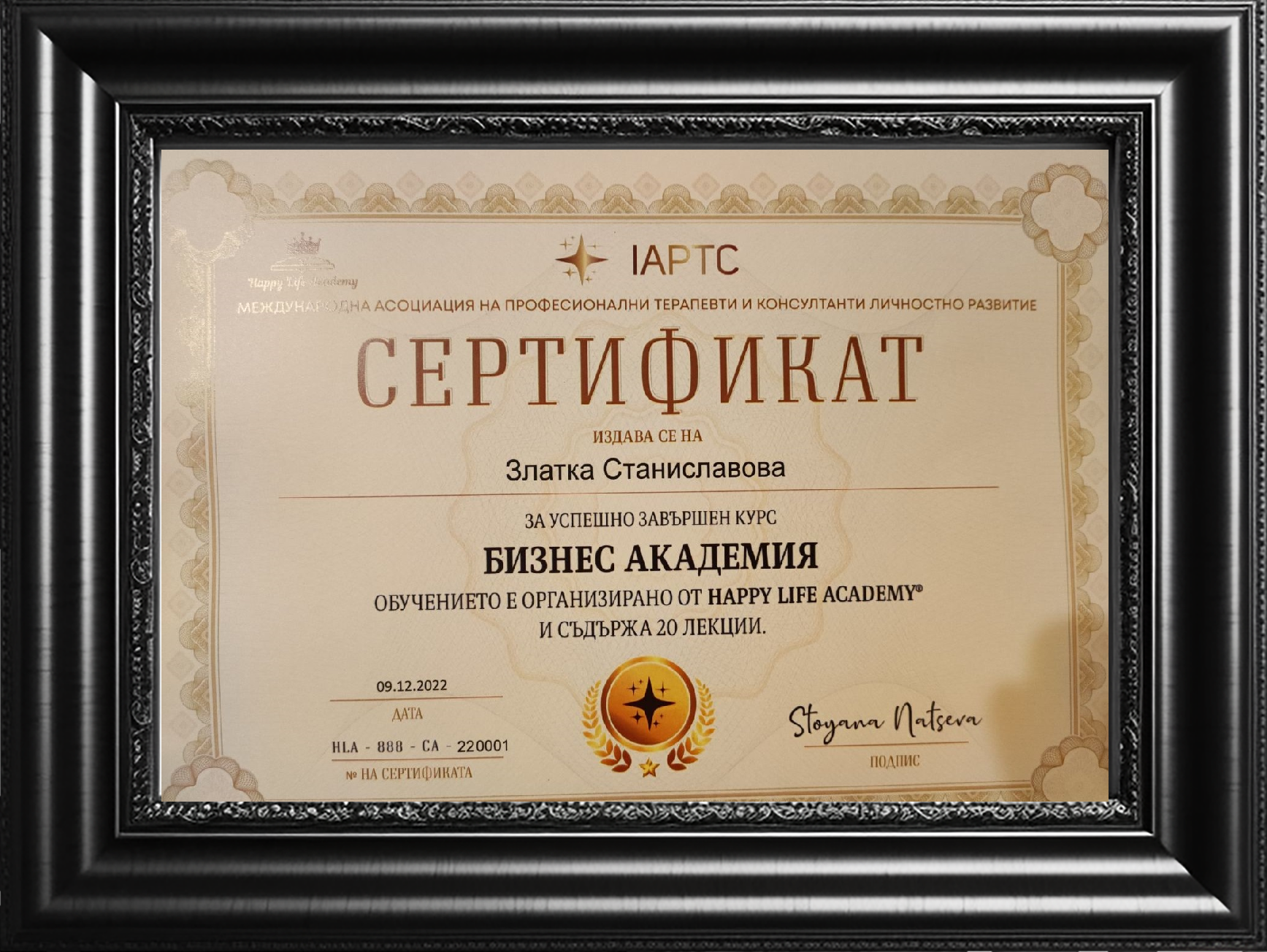 Пътят ми към личностното развитие и позитивното самопрограмиране започна от едно дълбоко осъзнаване, че съм изгубила връзката със себе си в забързаното ежедневие. Тогава взех решение, което промени живота ми – започнах да се фокусирам върху вътрешната си трансформация. След години усилена работа върху себе си, преминах през множество обучения, тренинги и семинари, които ме изправиха пред нови хоризонти и ми помогнаха да изградя живота, за който винаги съм мечтала.